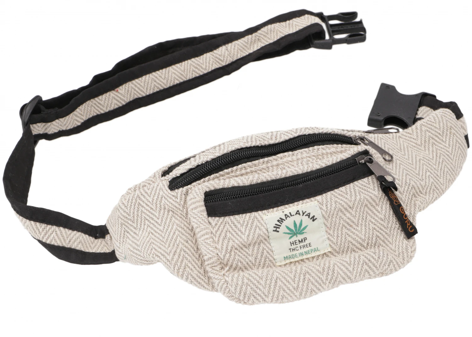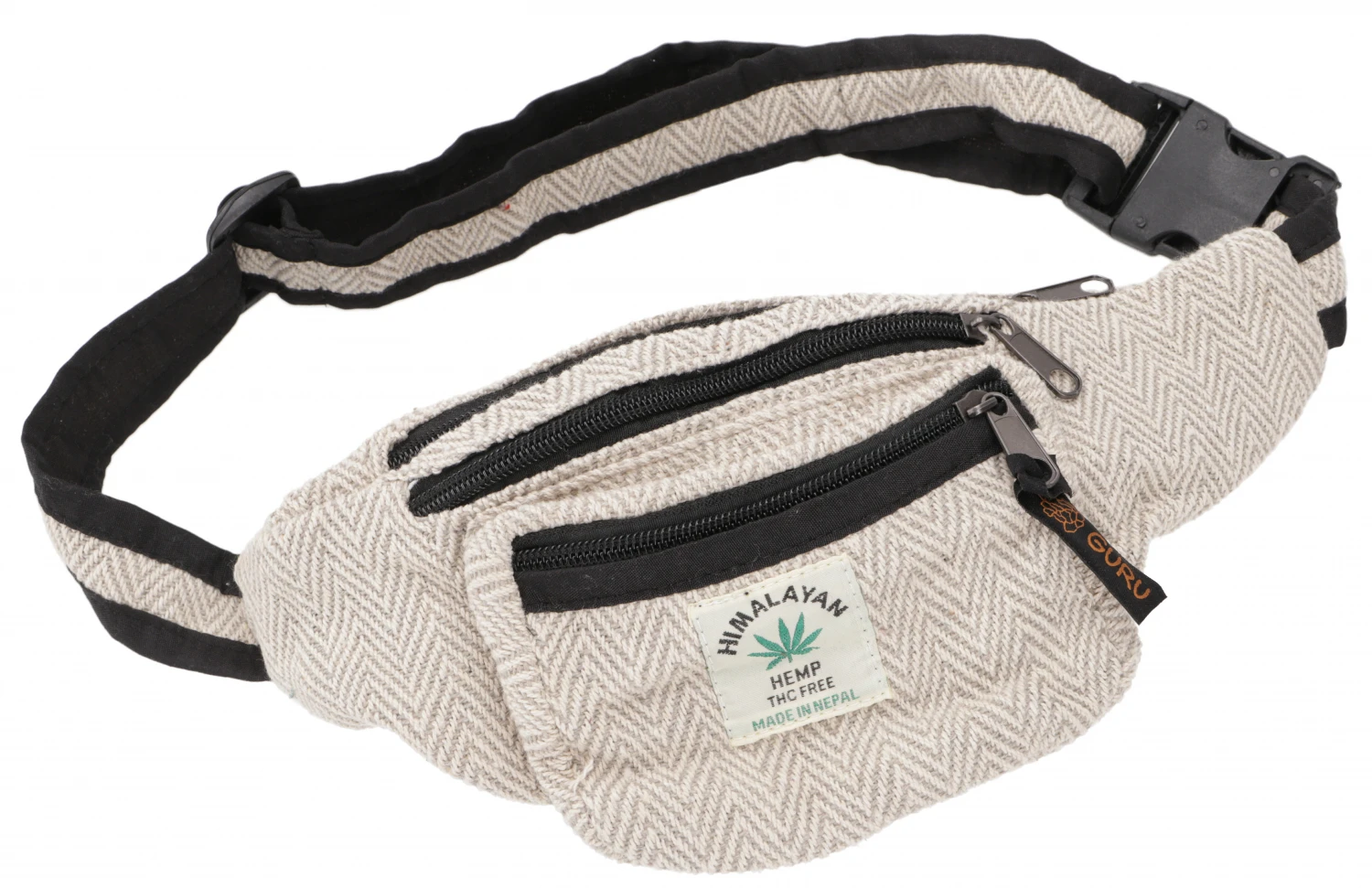 Praktische Gürteltasche aus traditionellem nepalesischen Webstoff. Drei Reißverschlussfächer machen es leicht, die wichtigen Sachen immer bei der Hand zu haben.