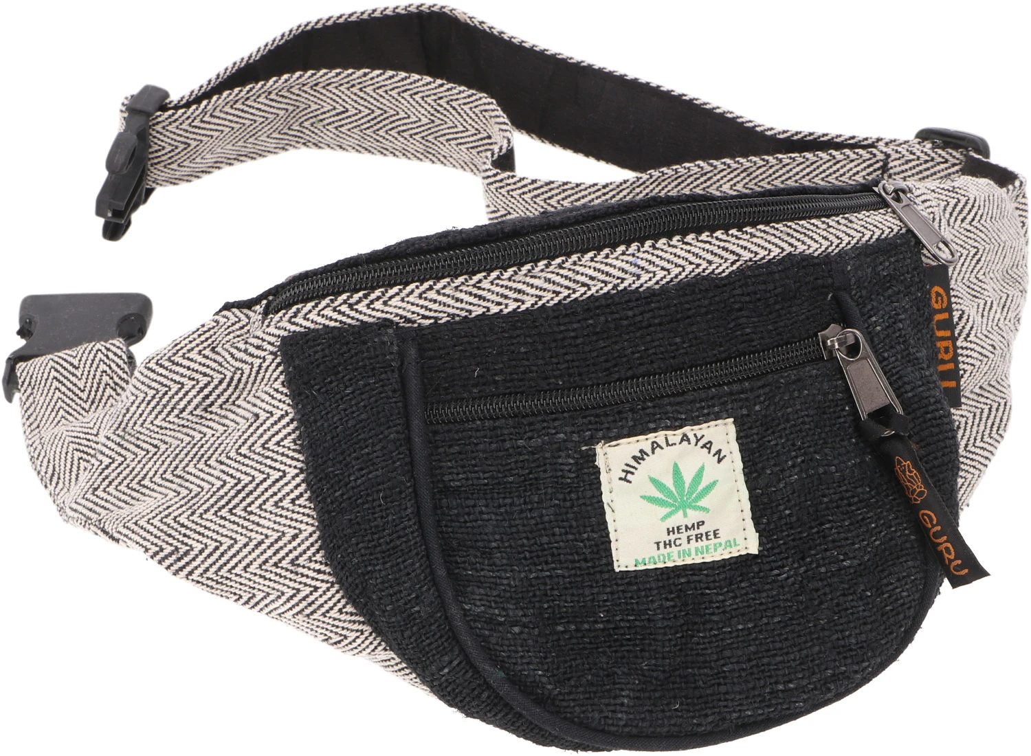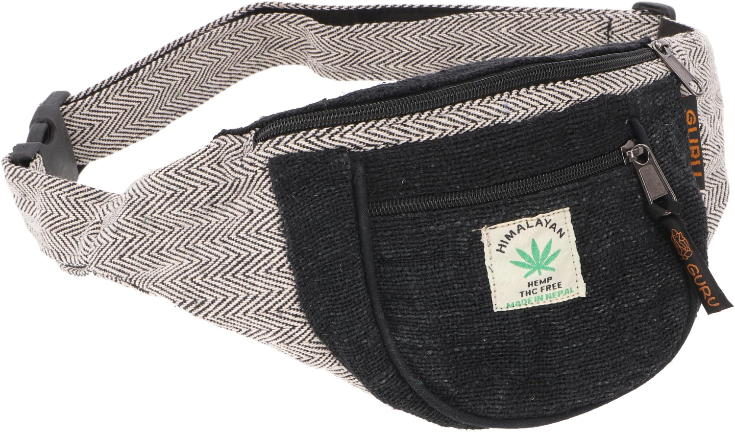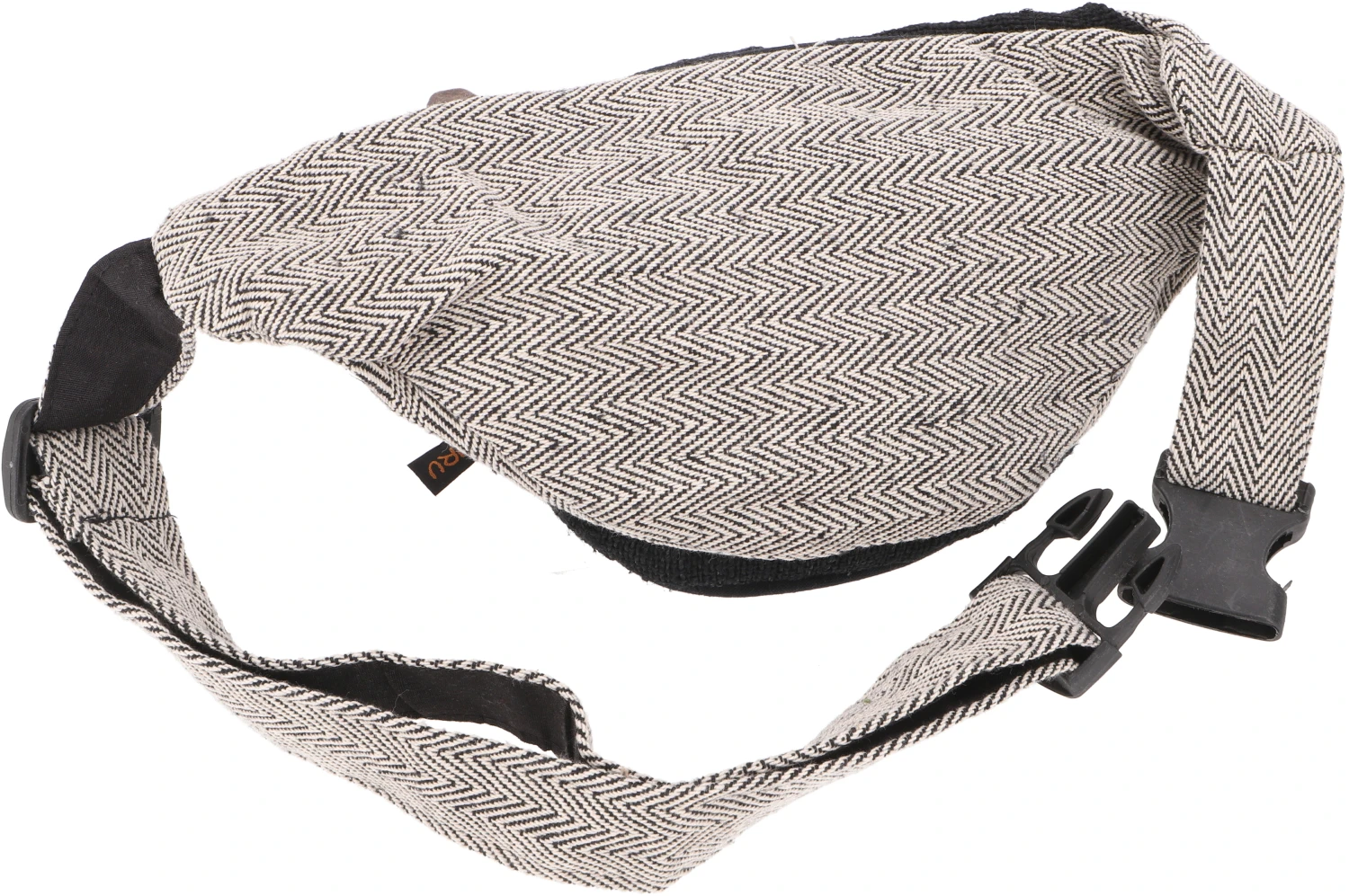 Praktische Gürteltasche aus Hanffaser in Kombination mit traditionellem Webstoff aus Nepal.