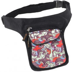 Gürteltasche mit drei geräumigen Reißverschlussfächern und farbenfrohem psychodelischem Druck.