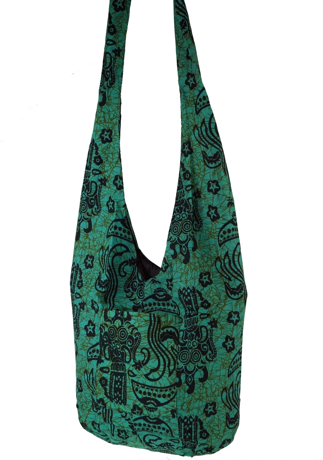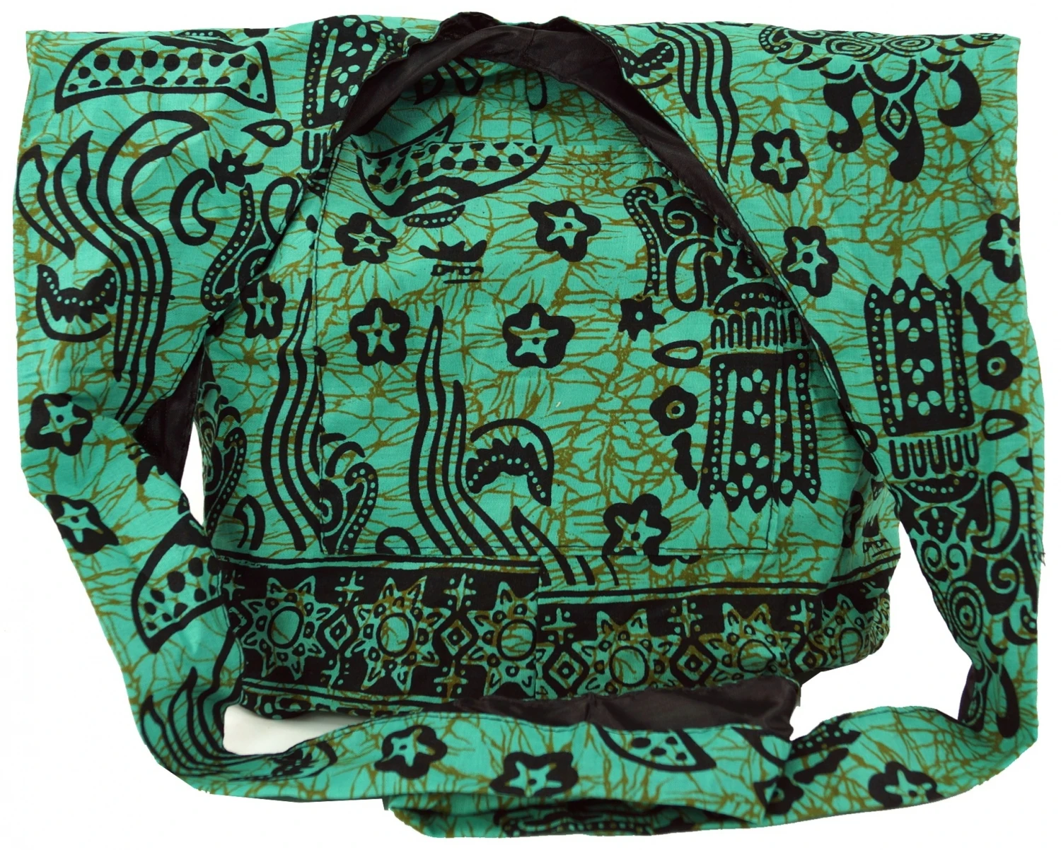Geräumige Schultertasche mit Reißverschluss aus Indonesien. Die Tasche ist mit einem traditionellen Batikmuster versehen.