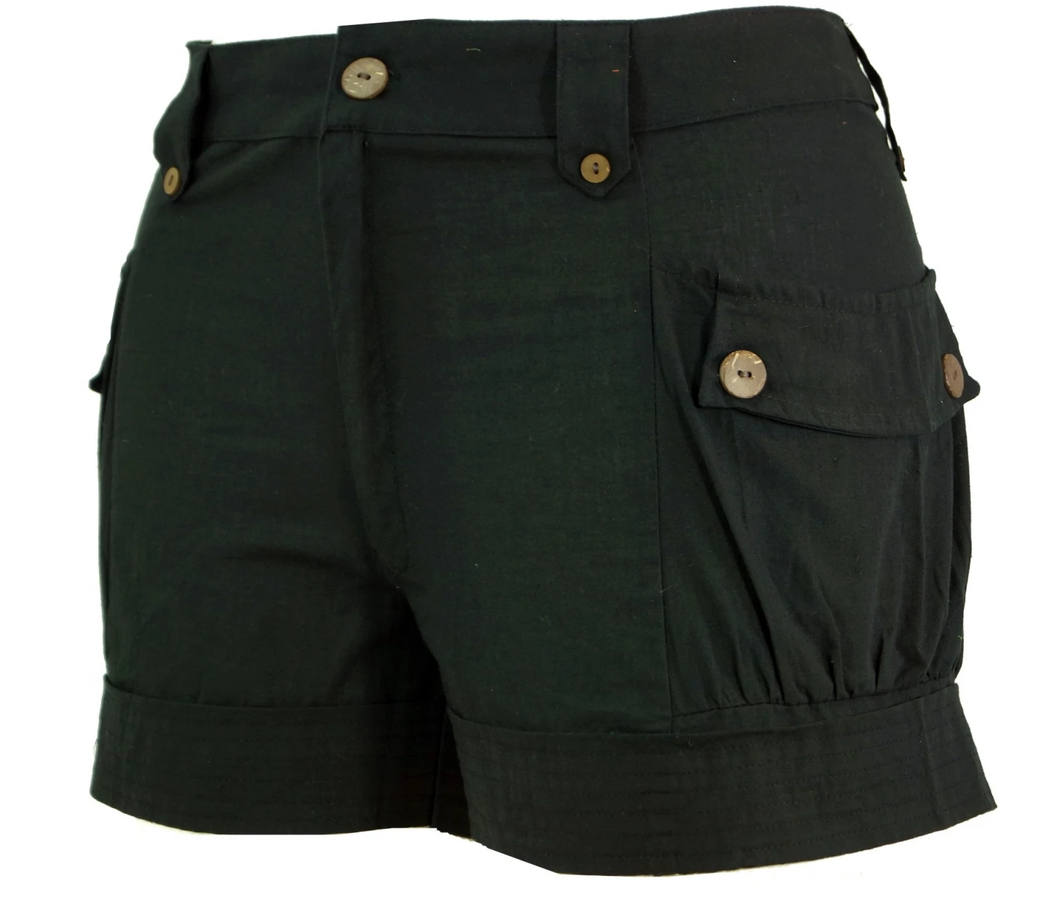 Schlichte kurze Hose mit aufgesetzten Taschen und schönen Kokosknöpfen.