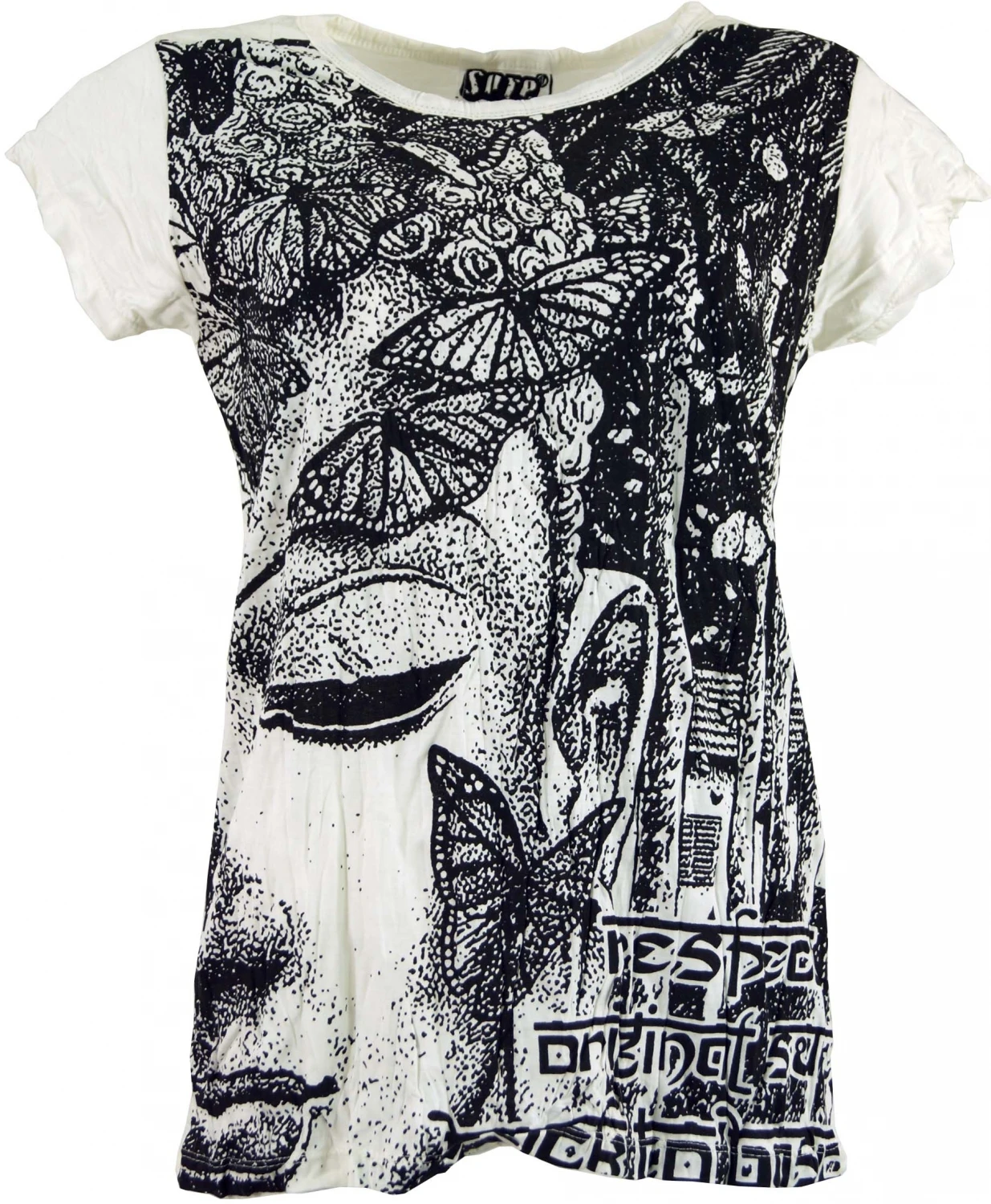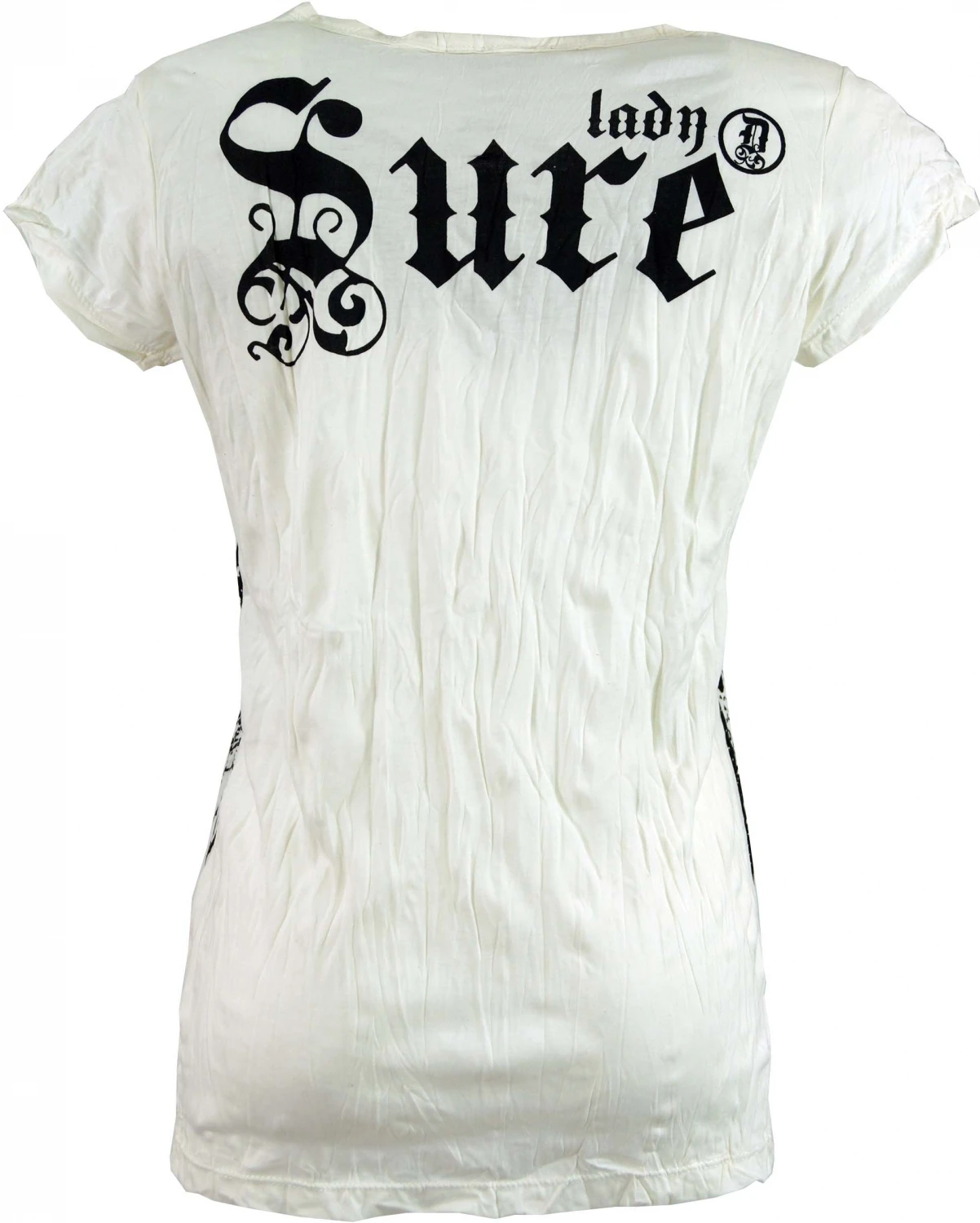 Trendiges T-Shirt mit qualitativ hochwertigem Druck in leichtem `Krinkel-Look`, der Kragen hat einen angesagten `Used-Look`. Um den Krinkeleffekt auch nach dem Waschen zu bewahren, bitte nach dem Waschen einfach zusammen drehen. Das Material ist weich und sehr angenehm zu tragen.