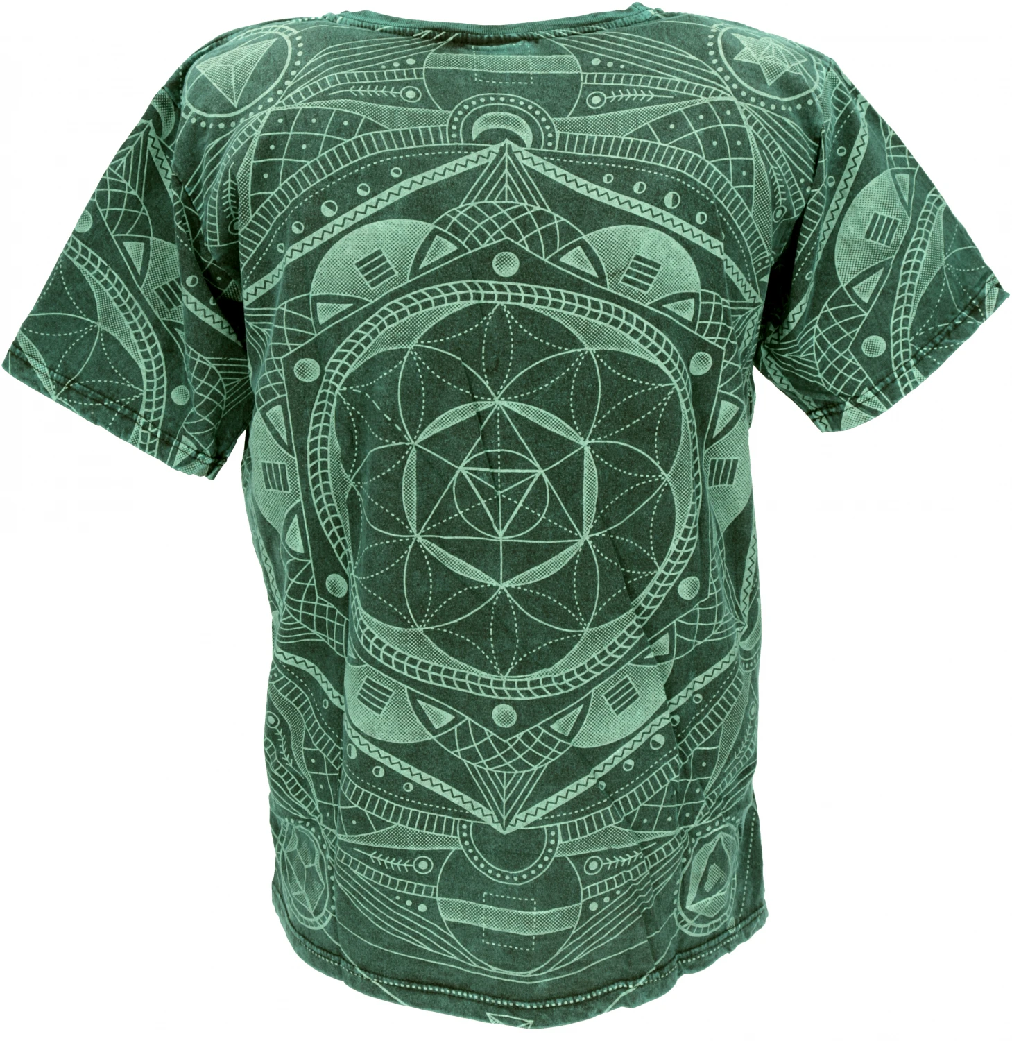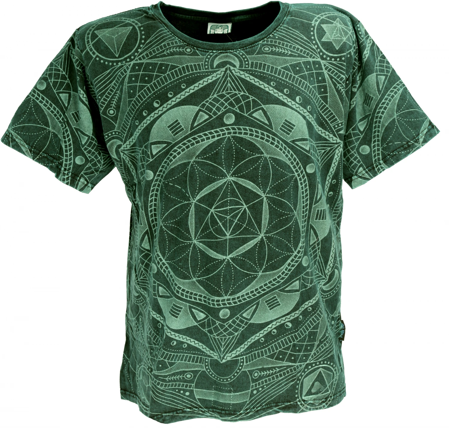 Stonewash Baumwoll-T-Shirt mit all-over Siebdruck und einem Motiv aus Nepal.
