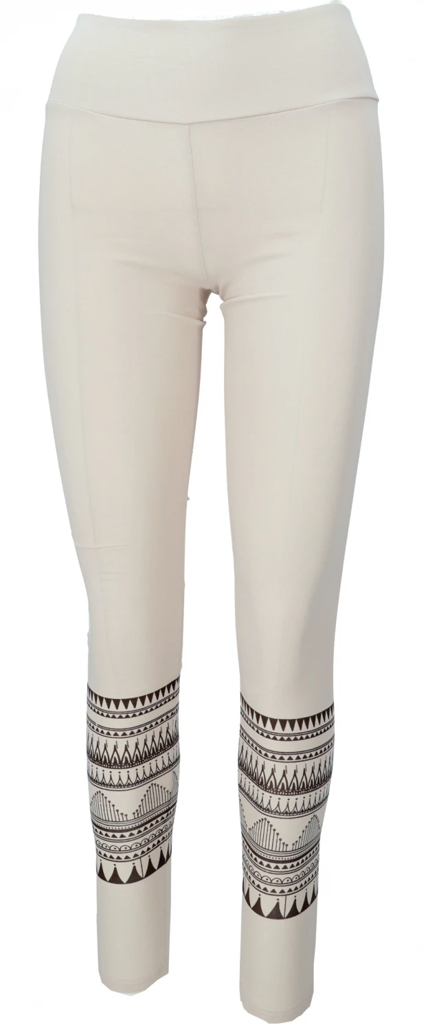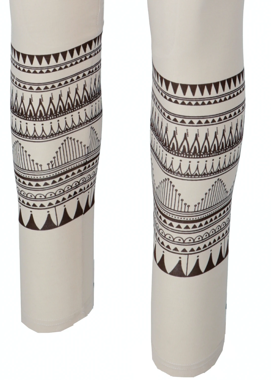 Tribal Print Yoga-Hose, Yoga Leggings Bio-Baumwolle – Naturweiß