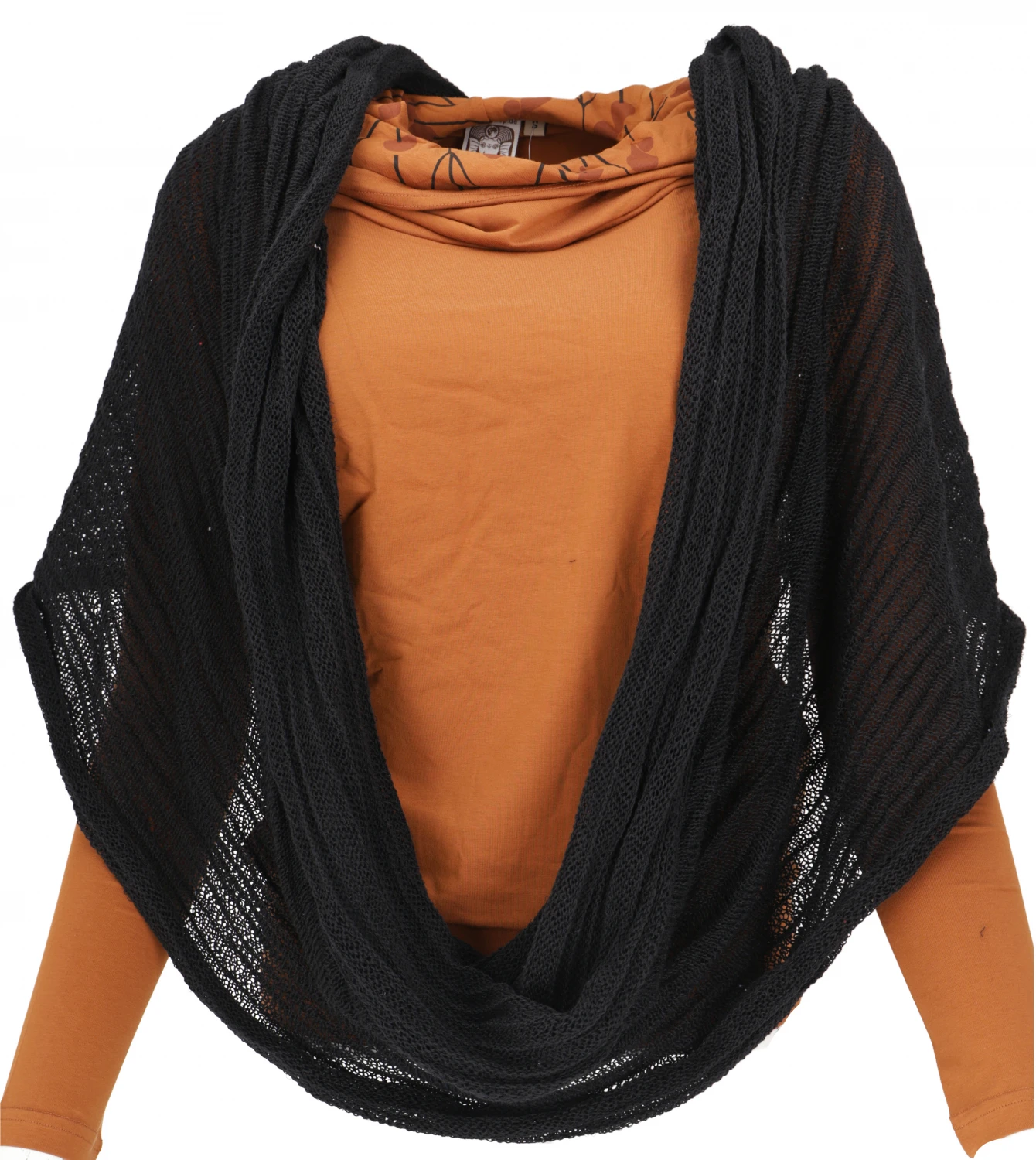 Optional kann man den weiten Schlauchschal auch als Schalkapuze, Weste oder Top tragen.