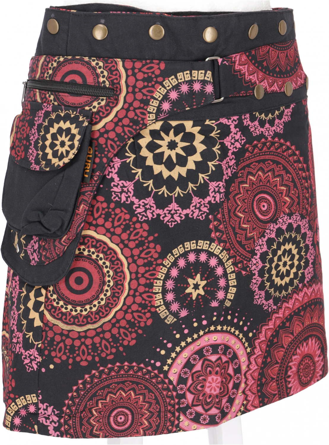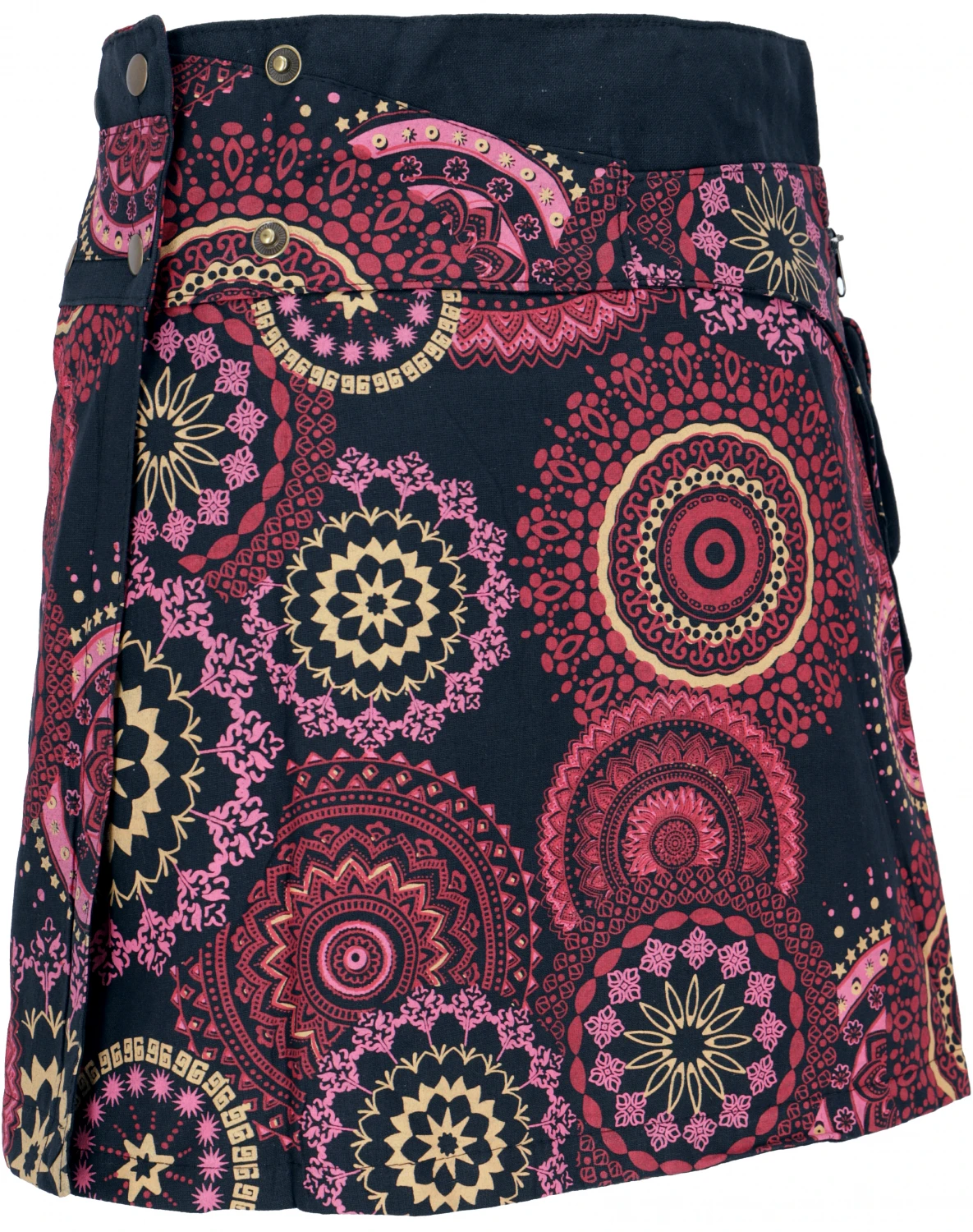 Wunderschöner Minirock mit farbenfrohem Mandalamotiv. Mit der flexiblen Knopfleiste kann der Rock von Größe S-XL getragen werden. Super praktisch ist die kleine Tasche, in der man die wirklich wichtigen Dinge immer dabei hat.