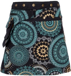 Wunderschöner Minirock mit farbenfrohem Mandalamotiv. Mit der flexiblen Knopfleiste kann der Rock von Größe S-XL getragen werden. Super praktisch ist die kleine Tasche, in der man die wirklich wichtigen Dinge immer dabei hat.
