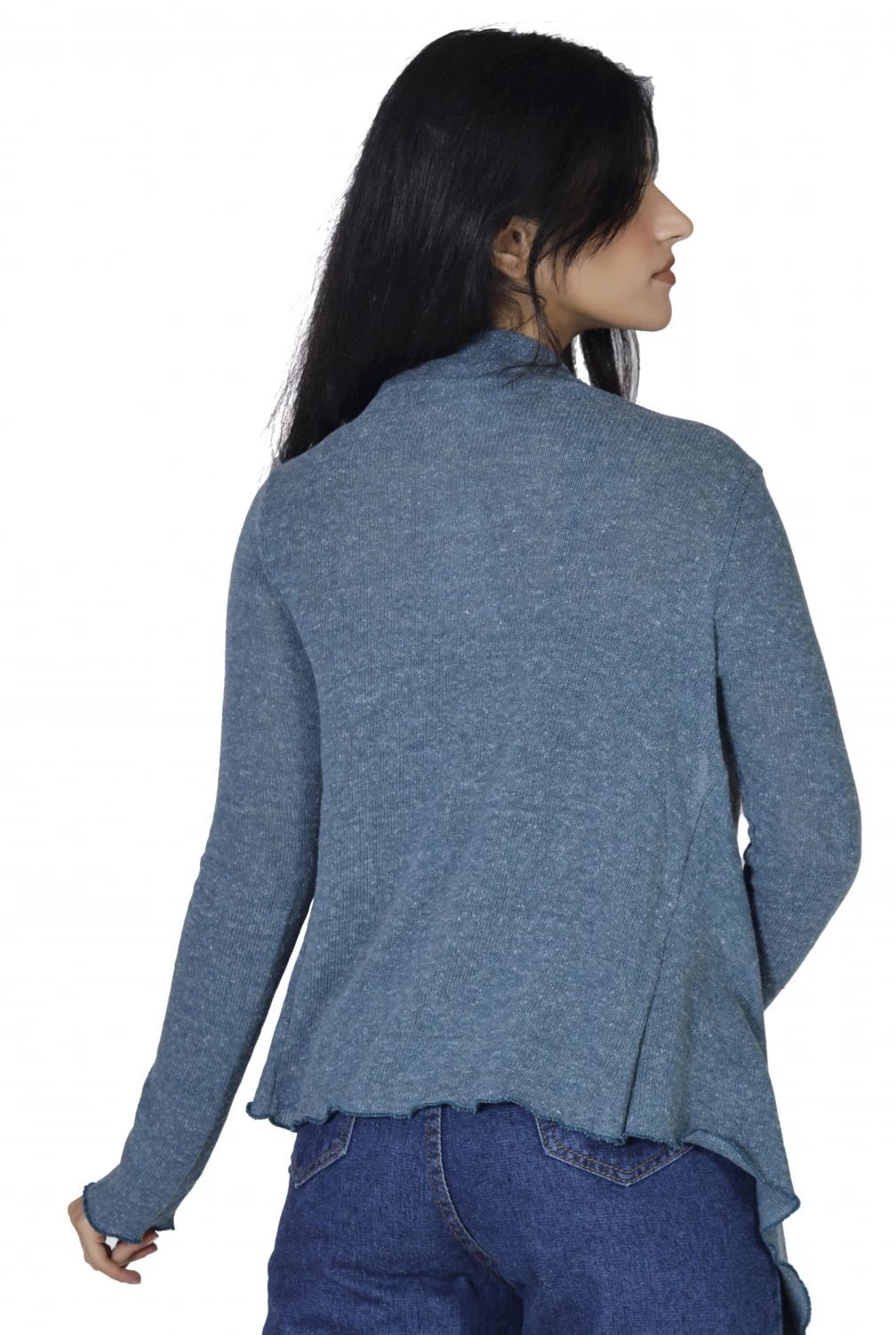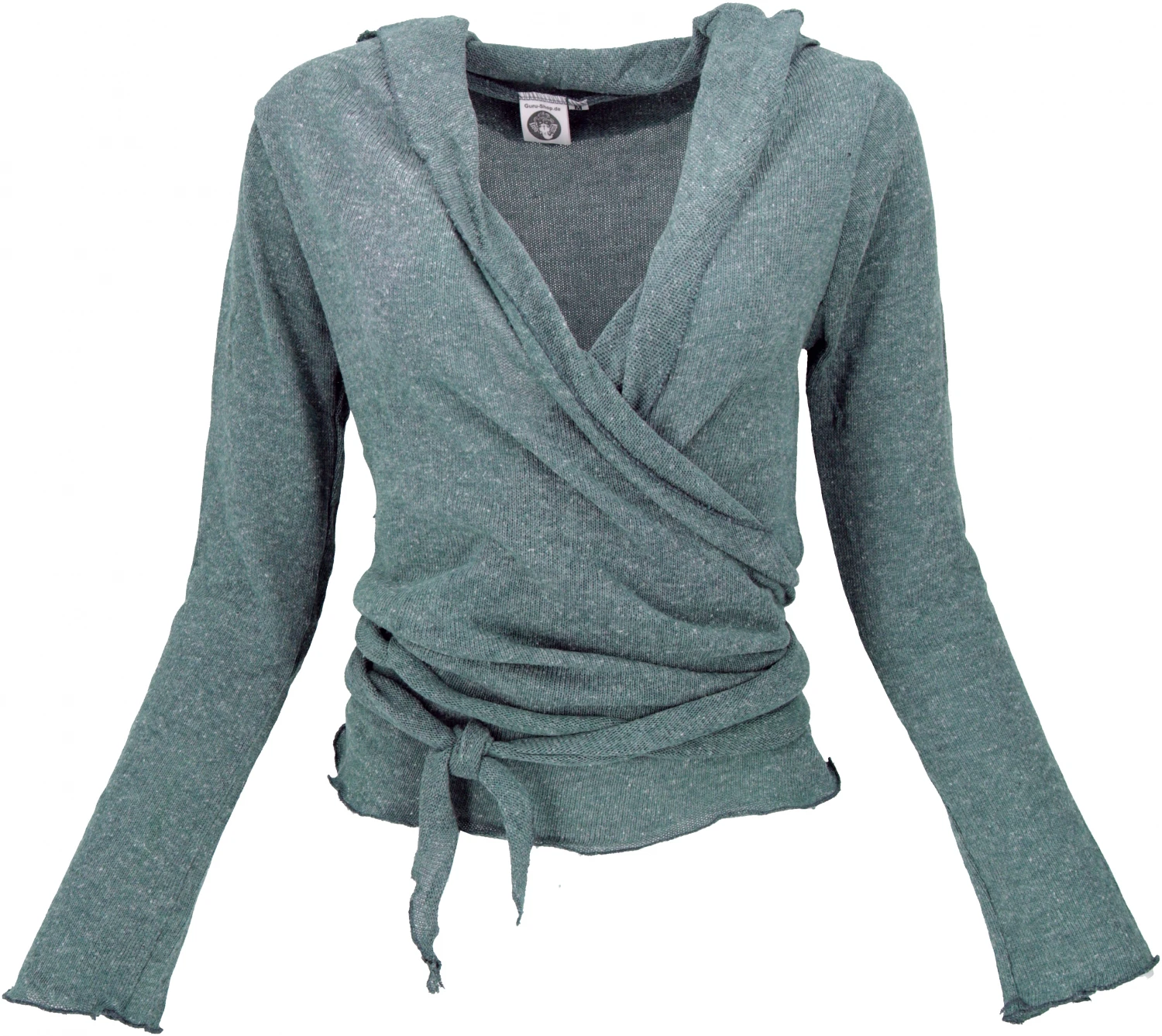 Figurbetontes Strickshirt zum Wickeln. Je nach Belieben kann man das Shirt aus weichem, natürlichen Baumwollstrick vorn, hinten oder seitlich binden.