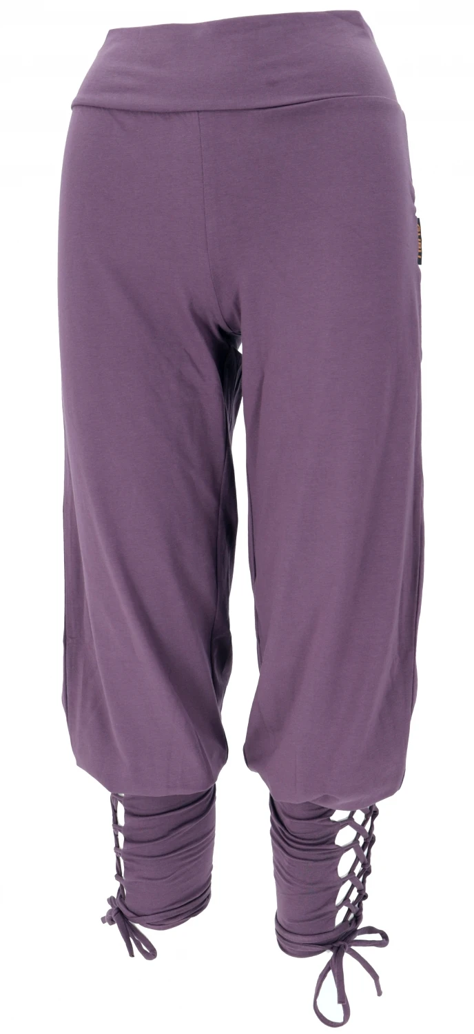 Die Hose aus Bio-Baumwolle ist sehr weich und angenehm zu tragen. Die Bänder können nach Belieben geschnürt werden. Ob zum Sport, Yoga oder Festivaloutfit, diese femininen Leggings sind ein echtes Highlight.